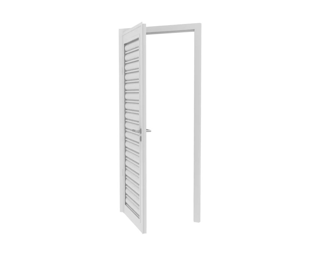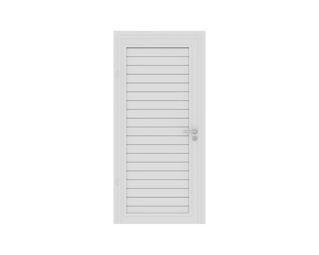The door can open inwards or outwards as required and can be installed with either left or right hinges.